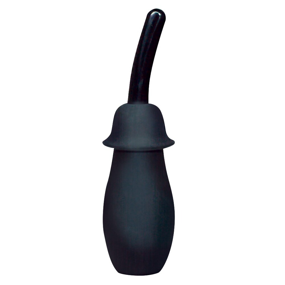 Black intimate shower with three different attachments. One attachment slightly curved, the others arrow shaped and twisted. Each one with two openings and with a length of 4.5 inches. The capacity of the intimate shower is 100 ml. Material: ABS, rubber.
