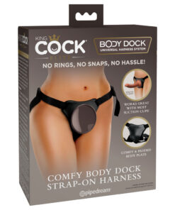 The patented Body Dock Universal Harness System takes strap-on play to a whole new level! It’s as simple as attaching your favourite King Cock Elite silicone dildo (or any dildo/vibrator with a suction cup) to the suction dock.