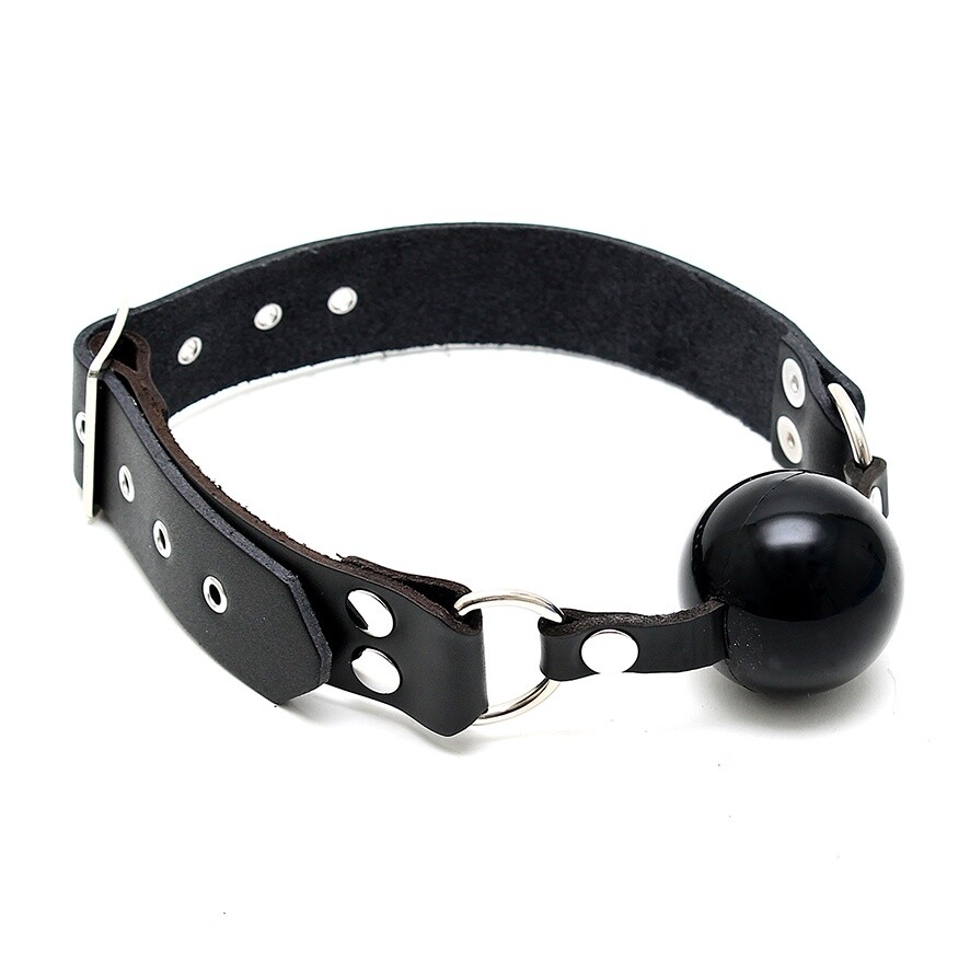 Genuine leather Gag with rubber ball and head strap, adjustable with buckle.