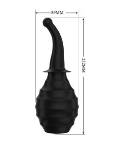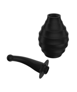 Large capacity 330ml with eight recessed water jets for a faster cleanup. The nozzle is a very flexible silicone material with offset jets to enable a free flow of fluid. Compacts nicely by storing the nozzle inside the silicone bulb when not in use. The flattened base on the bulb is upright as well. Can be safely cleaned in the dishwasher, and can be lubricated with water-based lubricants. DO NOT use silicone lubricants as they will destroy the medical-grade silicone.