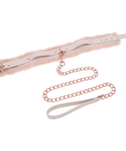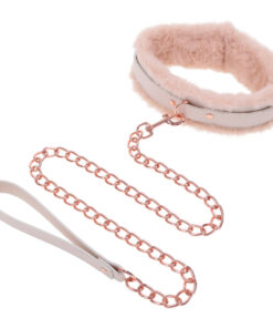 Unleash your inner flirt and take your playtime to a whole new level with a luscious peach-coloured faux fur-lined collar and matching leash. The soft, luxurious feel against your skin is like a sweet embrace, while the rose gold hardware adds a touch of sophistication to your wildest adventures.