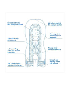 The different textures inside with various diameters massage the penis very intensely. The innovative vacuum opening at the end of the masturbator provides wonderful sucking feelings just like during an amazing blow job. Once the sticker has been removed from the vacuum opening, a finger can be used to cover or uncover the opening.
