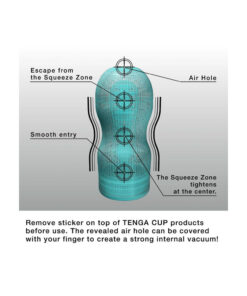 The Masturbator Original Vacuum Cup Extra Cool from Tenga is in a discreet design. This Premium version has an even more elaborate texture inside, even more, high-quality silicone and an even more flexible squeeze cup.