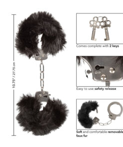 Explore endless restraint possibilities with the adjustable cuff size and durable design. Wrap around your back or around bed posts to relinquish total control to your lover and heightened pleasure while the plush faux fur keeps your wrists comfortable. The commanding cuffs are complete with 2 lock keys and a safety release latch in case of unexpected interruptions.