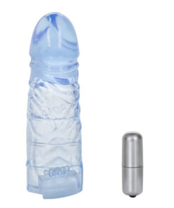 A comfortable way to extend your penis by 2 inches. This stretchy sleeve made from body-safe, odour free materials will fit most sizes. It has vein and ridge details down the shaft for a realistic feeling. There’s a removable bullet with an easy push on/off button which acts as a clitoral stimulator for your partner. Fully waterproof.