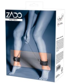 Leather ankle cuffs, padded and edge-trimmed. Connected by heavy-duty curb chromed curb chain.